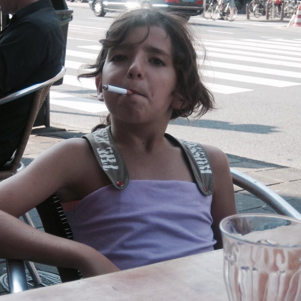 Esta é uma fotografia minha num café em Amesterdão com um cigarro de brincar que os meus pais compraram me na altura. Praticamente pregava partidas às pessoas que passavam por mim e assoprava para sair "fumo" (potalco) para de certa forma ver as reações das pessoas e divertir-me com a minha família ao mesmo tempo.
